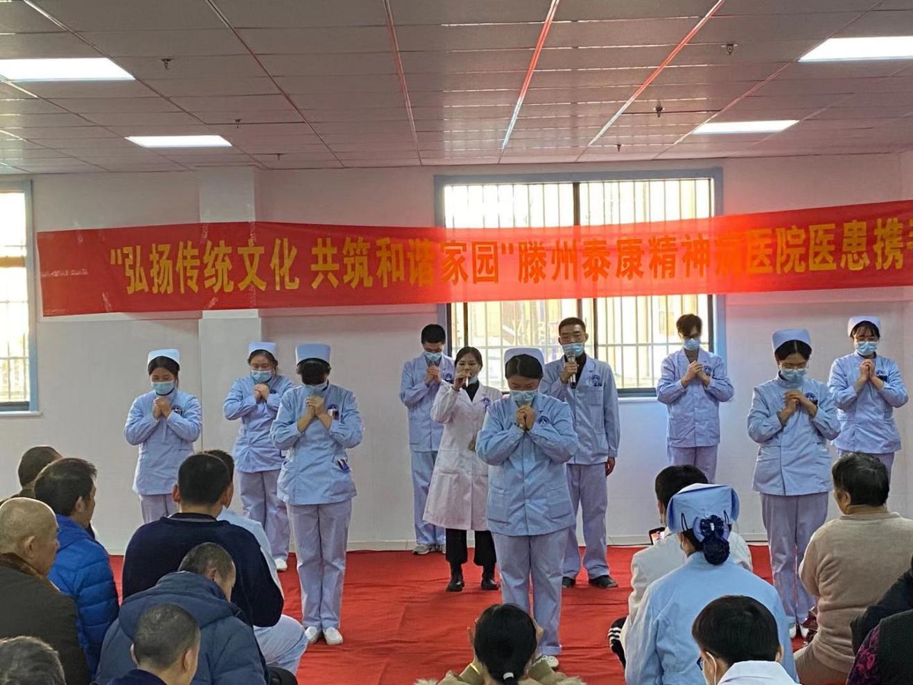2020年12月31日下午,滕州泰康精神病医院内欢声笑语,一场特殊的联谊会以“弘扬传统文化,共筑和谐家园”元旦联欢会在病区一楼隆重召开,患者与医护人员一起唱歌、跳舞、……医护人员欢聚一堂,共庆元旦佳节。