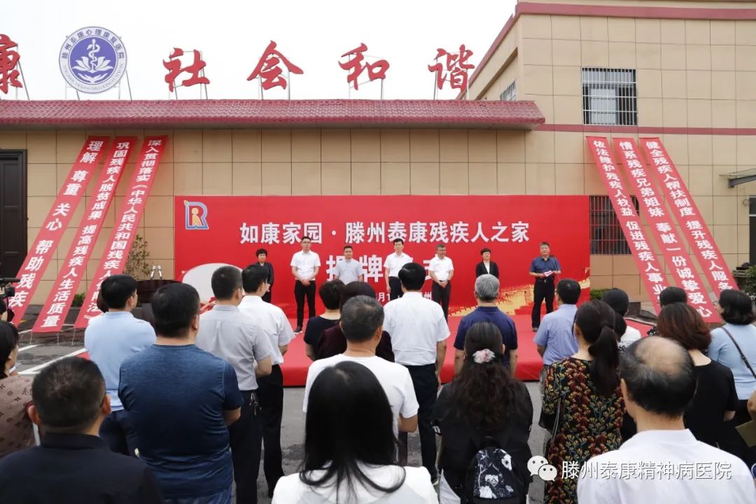 2021年6月18日,如康家园·滕州泰康残疾人之家揭牌仪式在滕州泰康精神病医院举行。枣庄市残联党组书记、理事长祝世峰,枣庄市残联党组成员、副理事长刘希武,滕州市政府党组成员、副市长张传纲等领导出席。